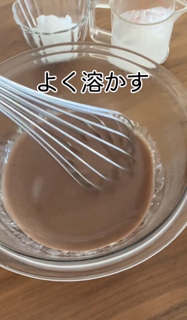 ✔ チョコレート液を加えるときは、一気に混ぜすぎない