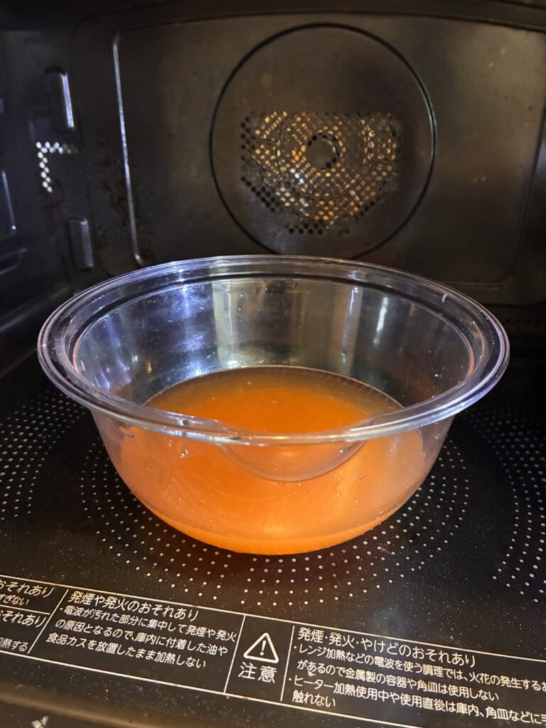 水とすりおろし人参を耐熱容器に入れ、