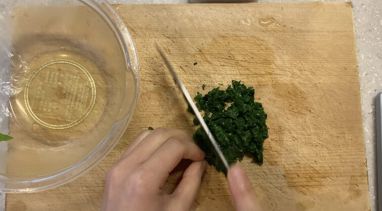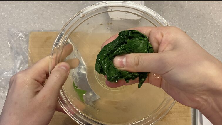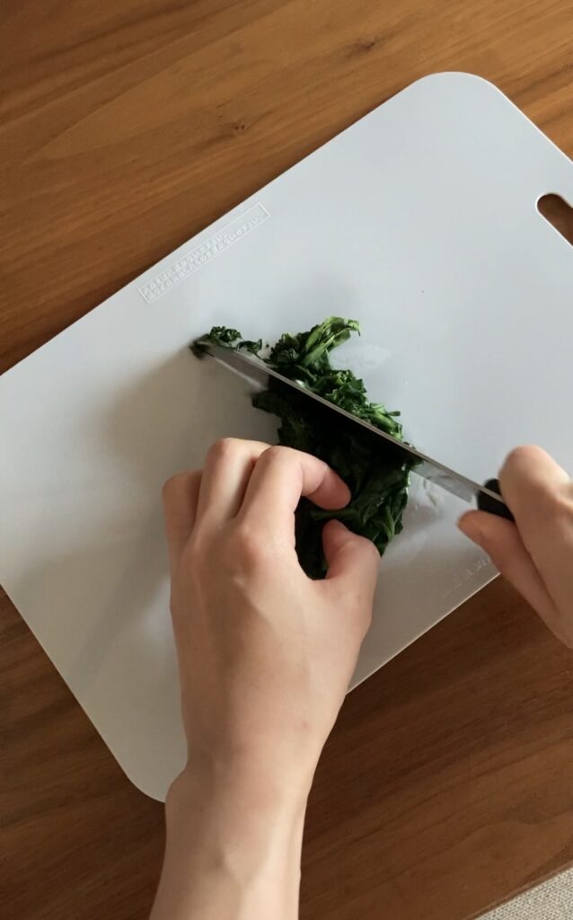 加熱して柔らかくしたほうれん草を、