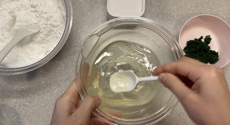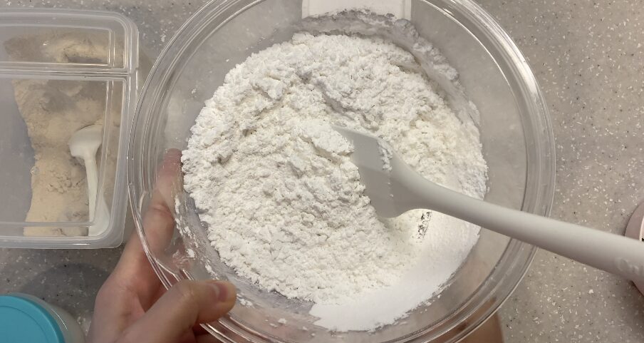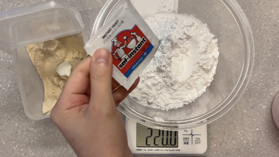 米粉・イースト・砂糖・塩を混ぜます