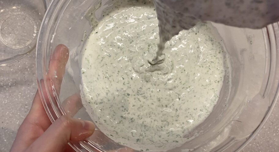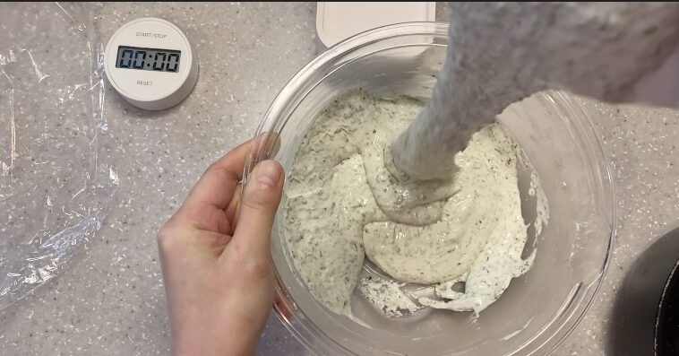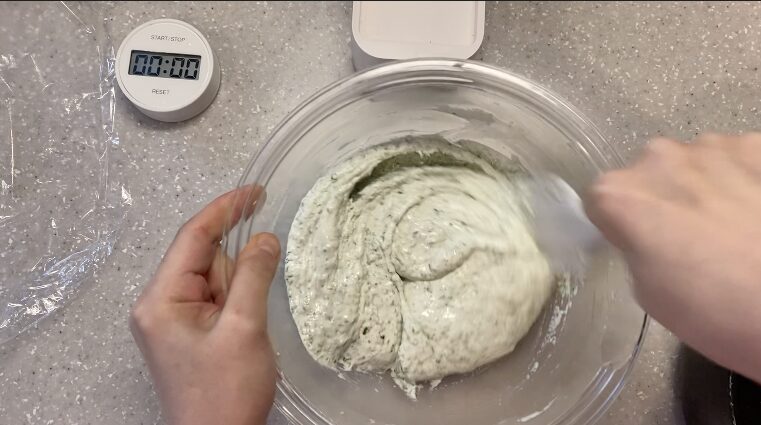 ヘラで約10秒、軽く混ぜてガスを抜きます