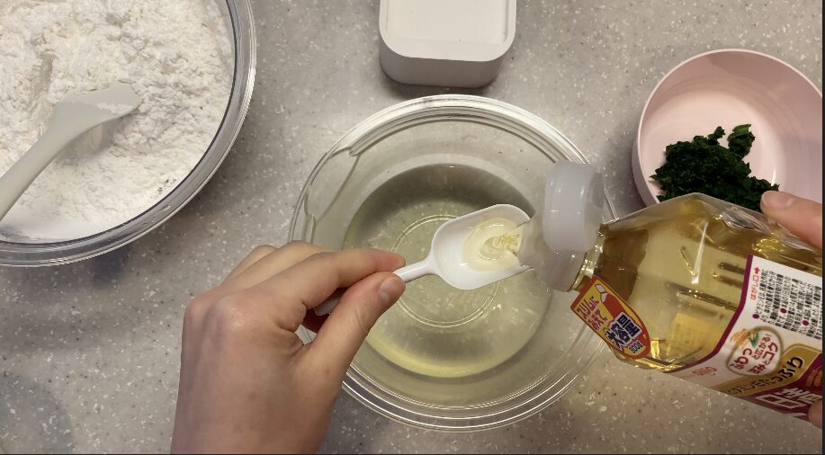 こめ油を入れ、よく混ぜます