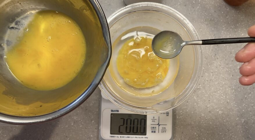 全卵+牛乳=合計200gになるように調整