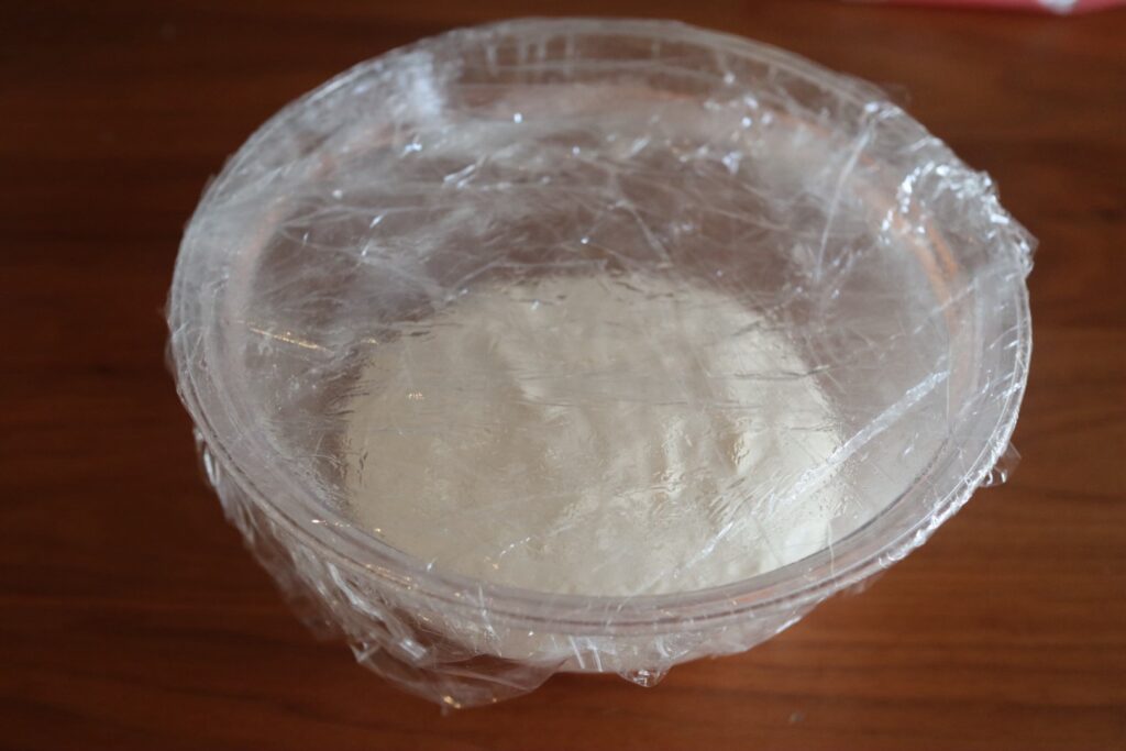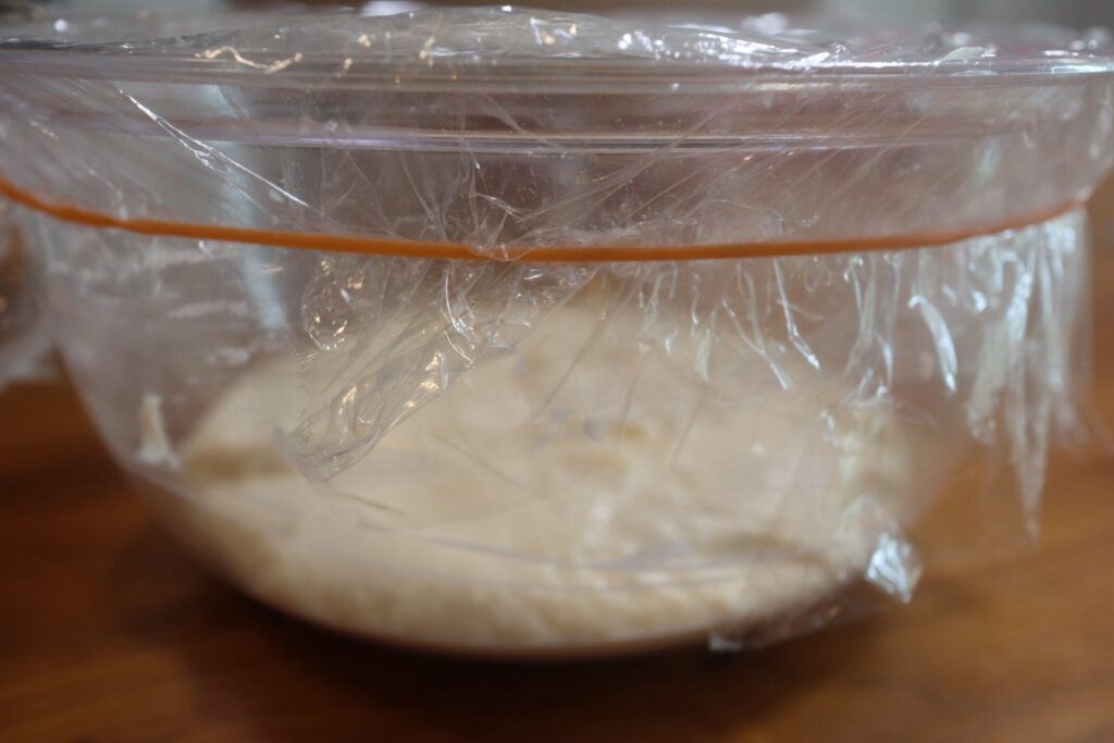 生地の入ったボウルにラップを2重にかけ、
