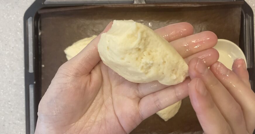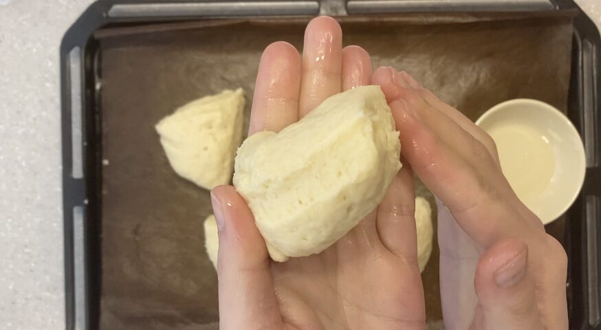 8つに分割して成形し、予熱なしで200℃20分焼成します