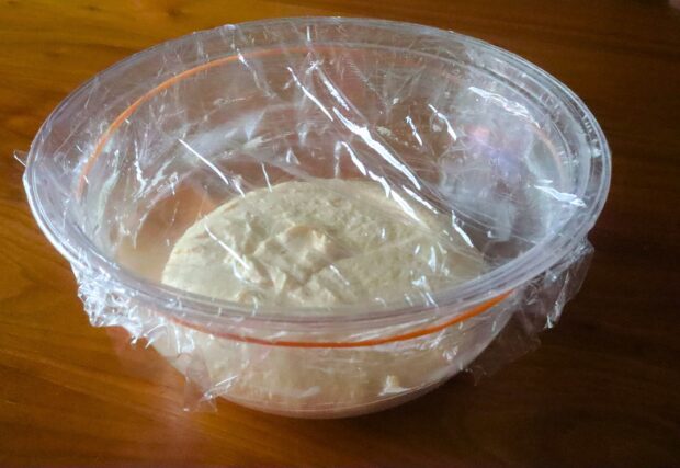材料全て混ぜ、生地の入ったボウルにラップを2重にかける