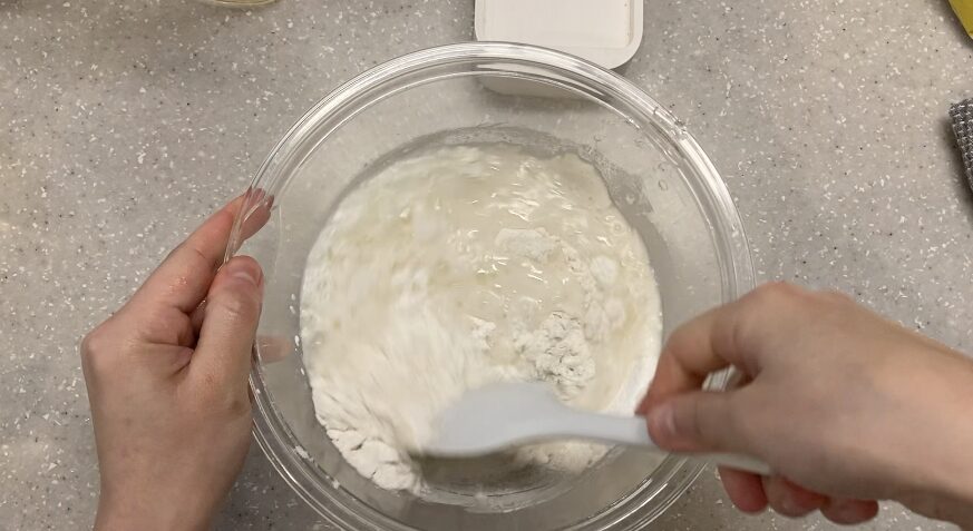 米粉・コーンスターチ・イースト・砂糖・塩を混ぜます
