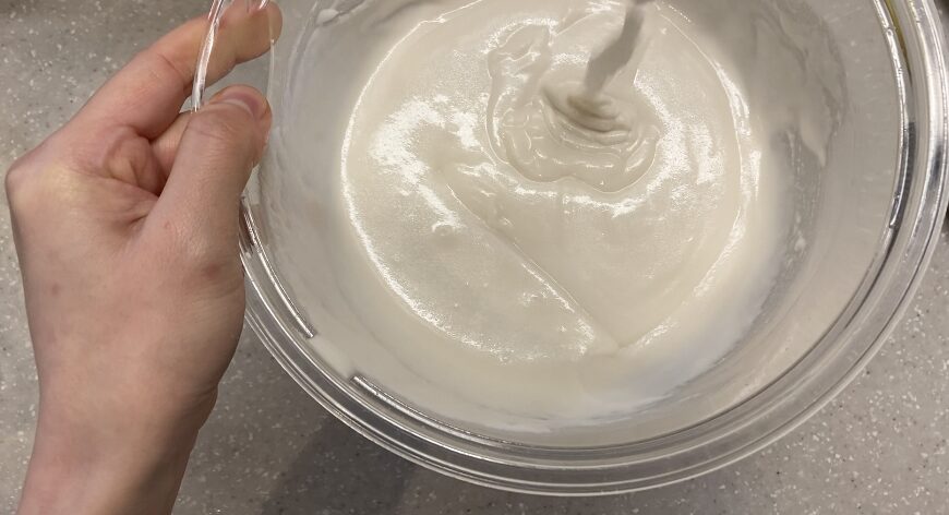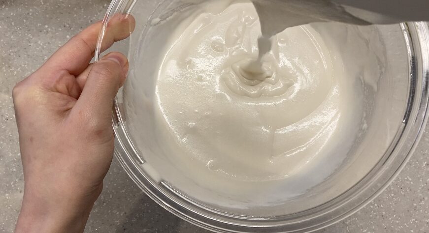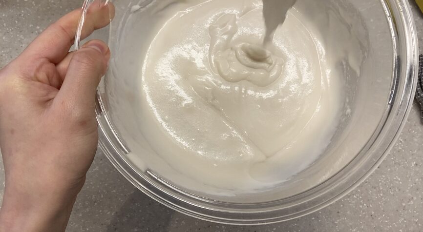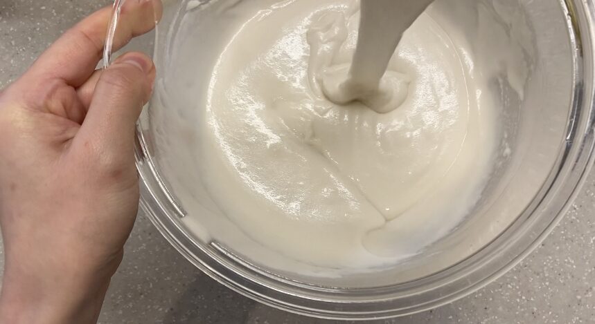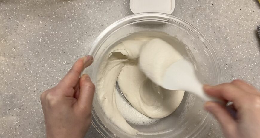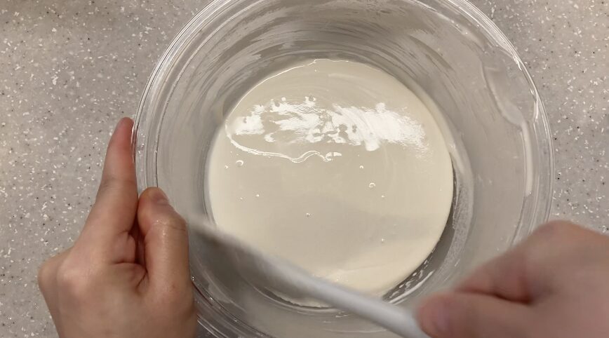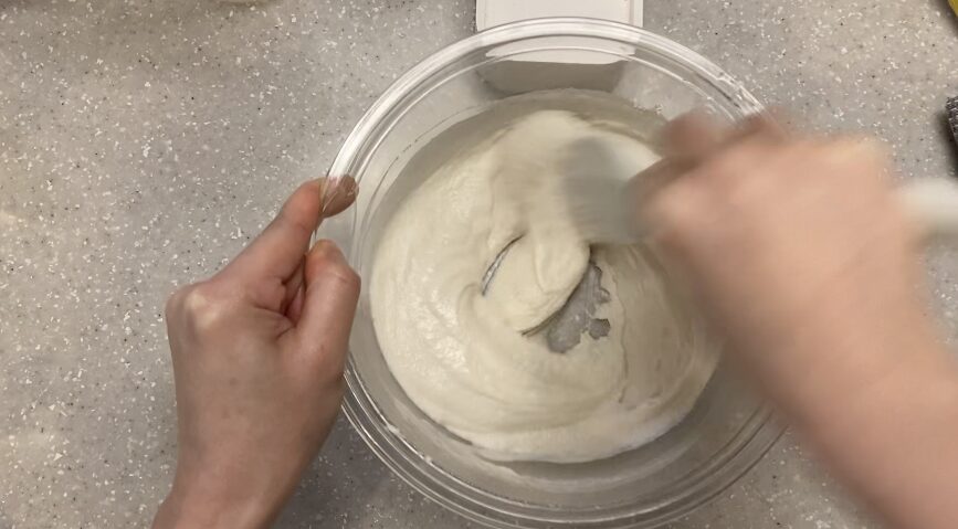 ゴムベラで約10秒、軽く混ぜてガスを抜きます