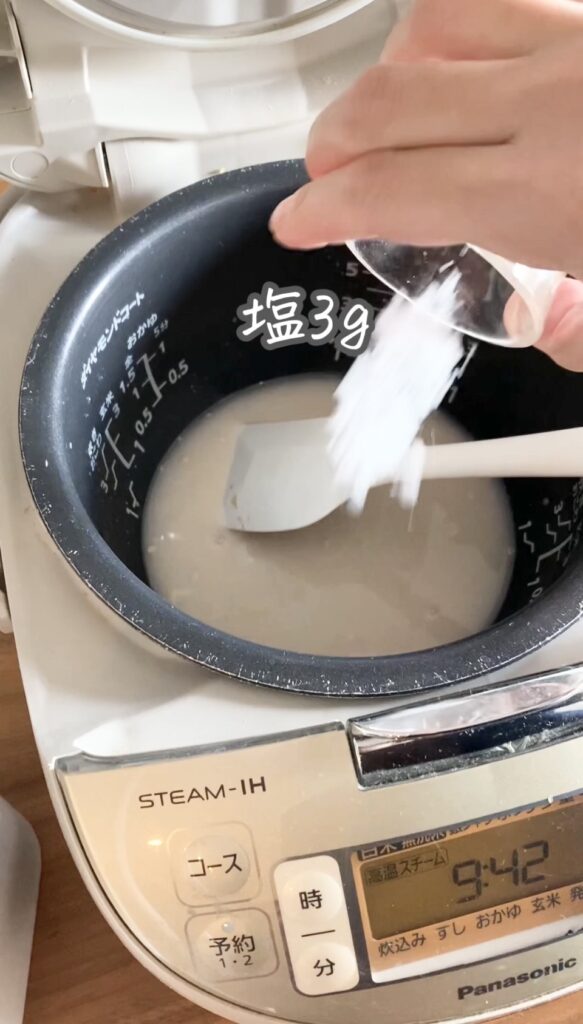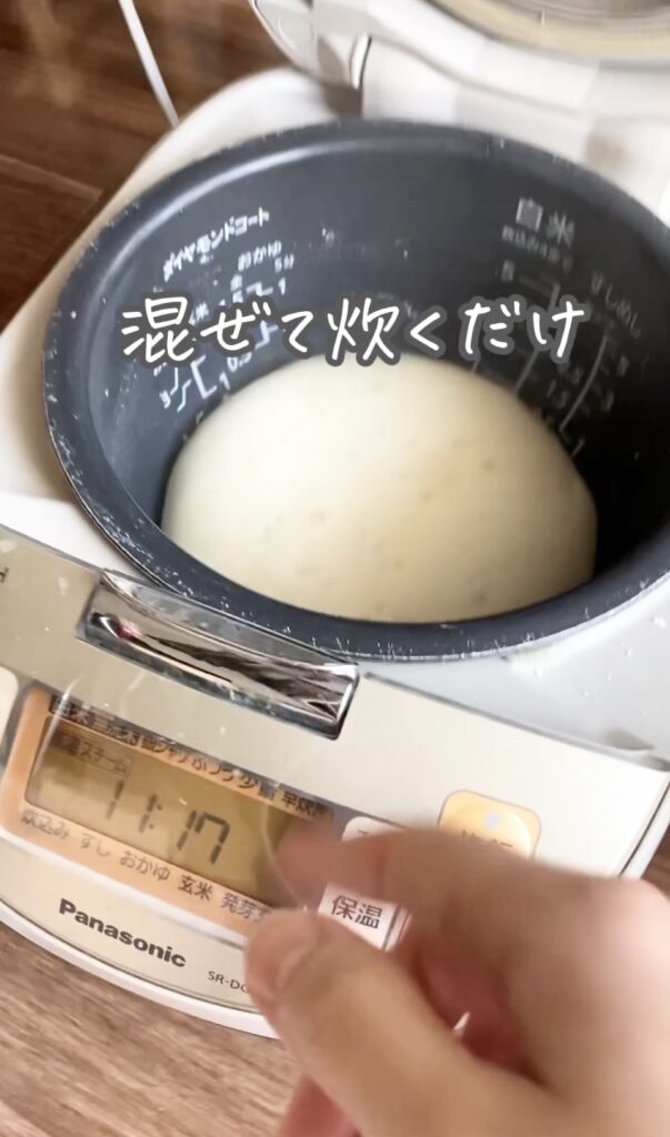 このレシピは5.5合炊き炊飯器を目安にしていますが、材料の量としては3合炊き炊飯器でも問題なく入る量です