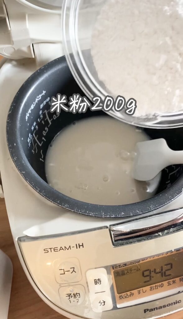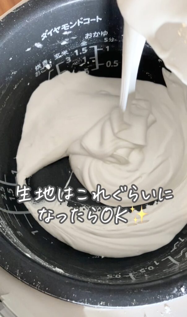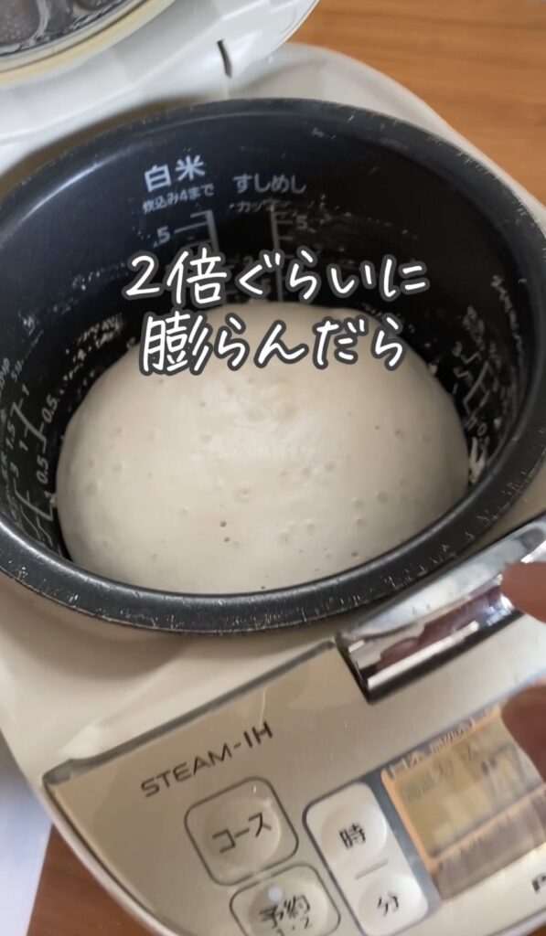 生地が十分に膨らんだら、炊飯モードで焼きます。