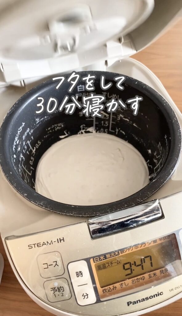 生地の表面をならし、保温モードまたはスチームモードで約30分発酵させます。