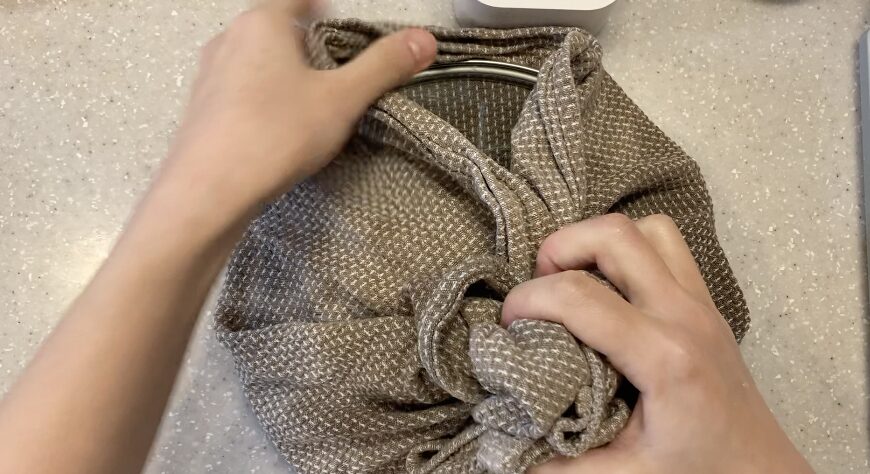 大判の布巾で巻いておく