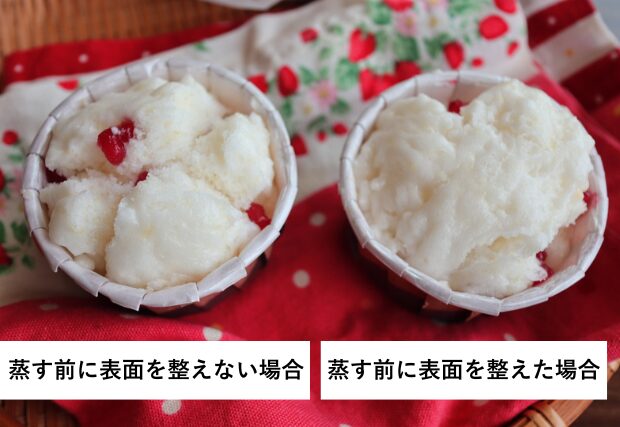 ぱっかーん!と割らずに仕上げたいなら、蒸す前に表面をなでて整えてみてね