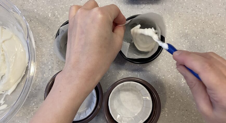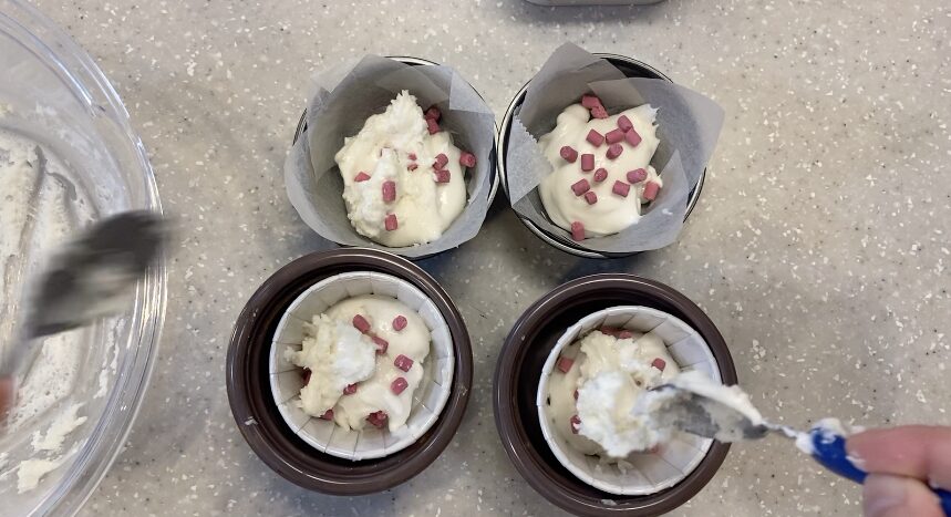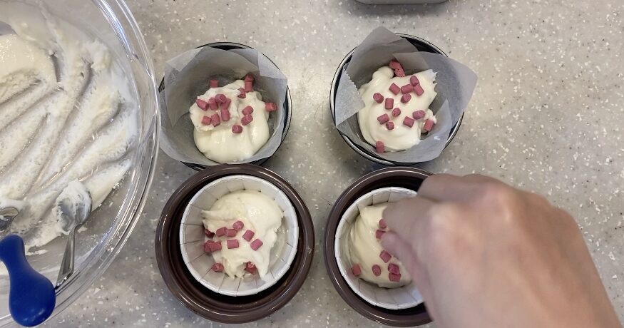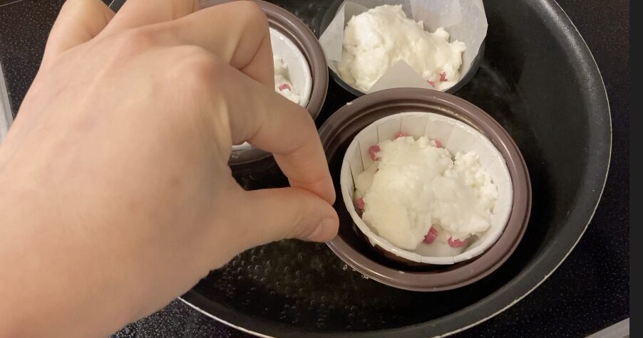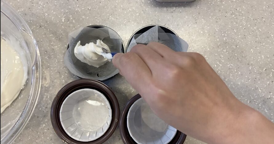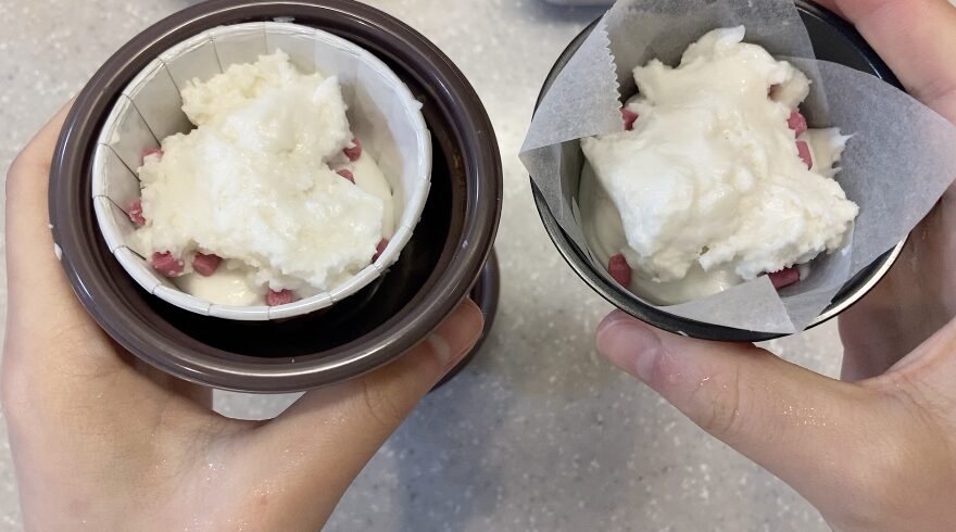 混ぜたら手早く型に流して蒸しましょう!