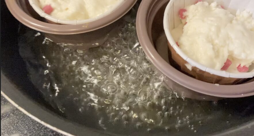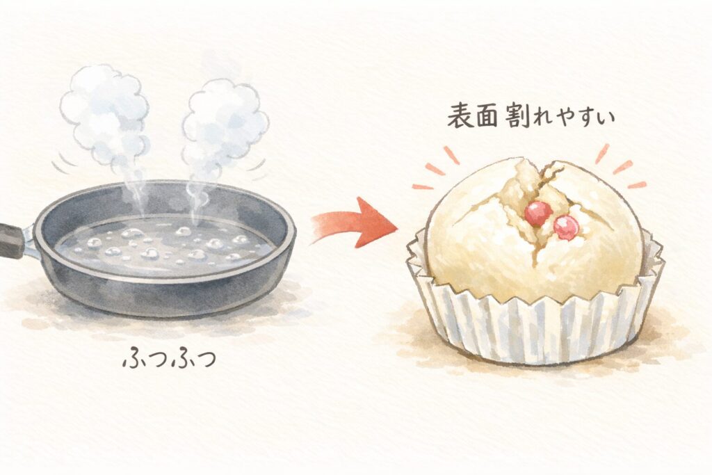 沸騰させると蒸しパンの表面が