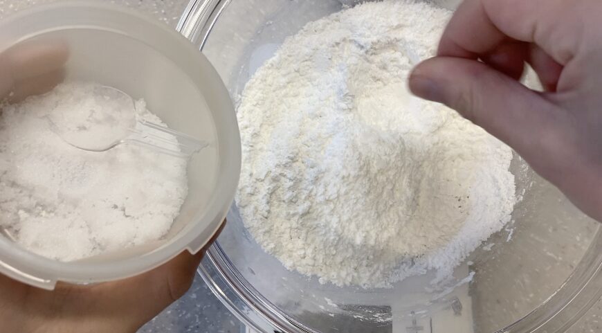 ベーキングパウダーは水分と合わさるとすぐに反応します。