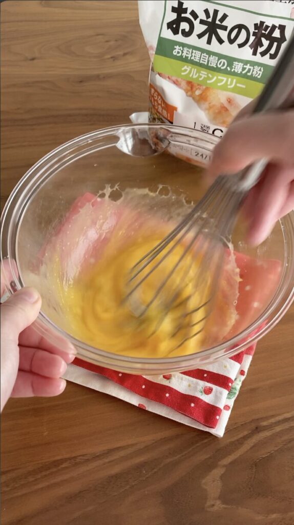 白身と黄身がしっかり混ざるようにします。
