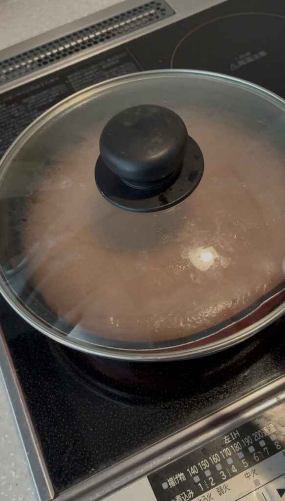 寒い季節はフライパン蓋の上から