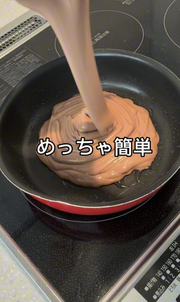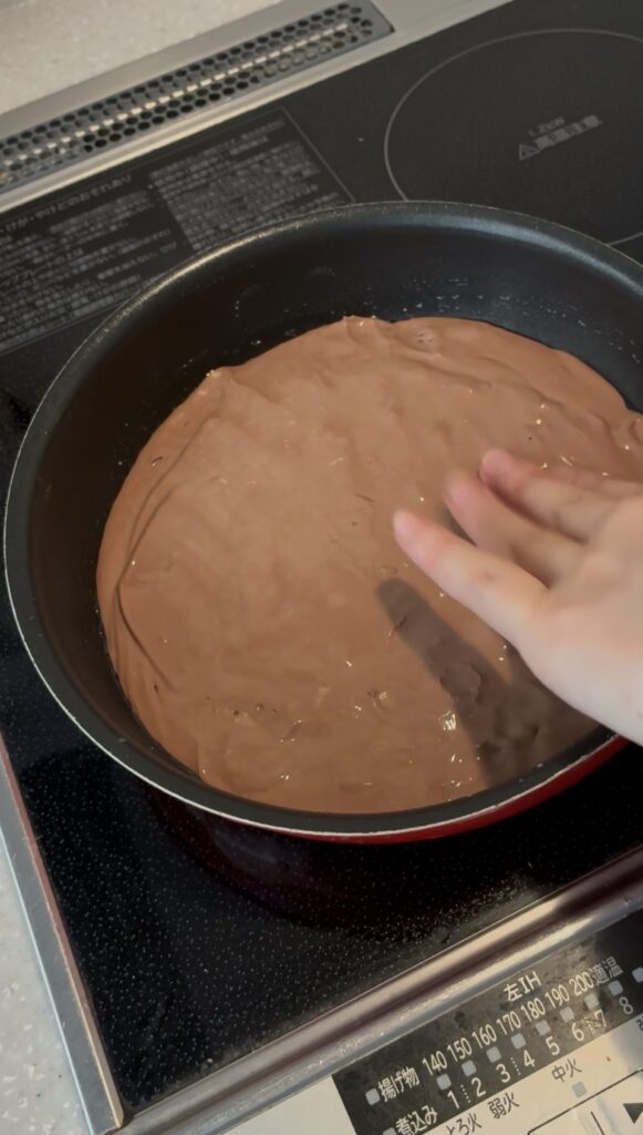 生地をフライパンに一気に流し入れます