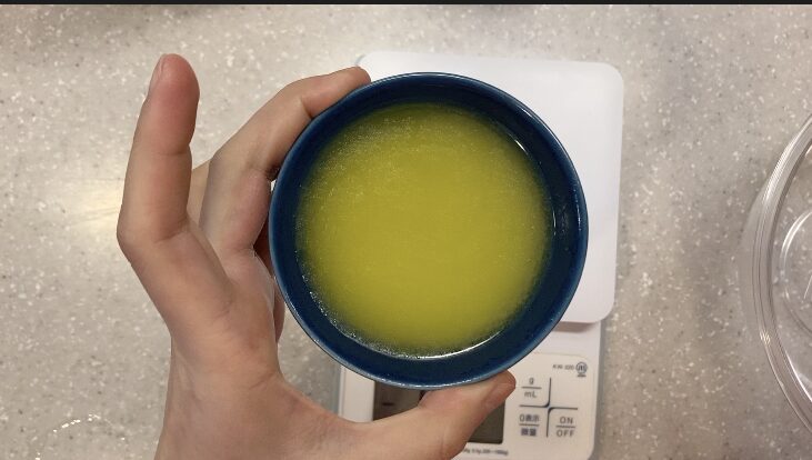 小さな固まりが残るくらいで止めると、余熱でキレイに溶けます