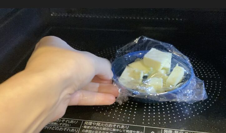 500〜600Wで10〜20秒ずつ様子を見ながら溶かします