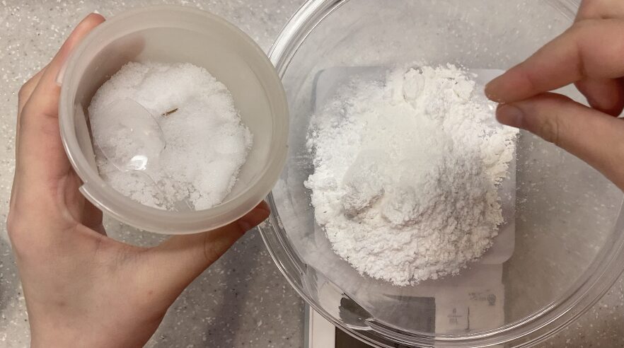 大きなかたまりが残ると、生地が混ざりにくく焼きムラの原因になります