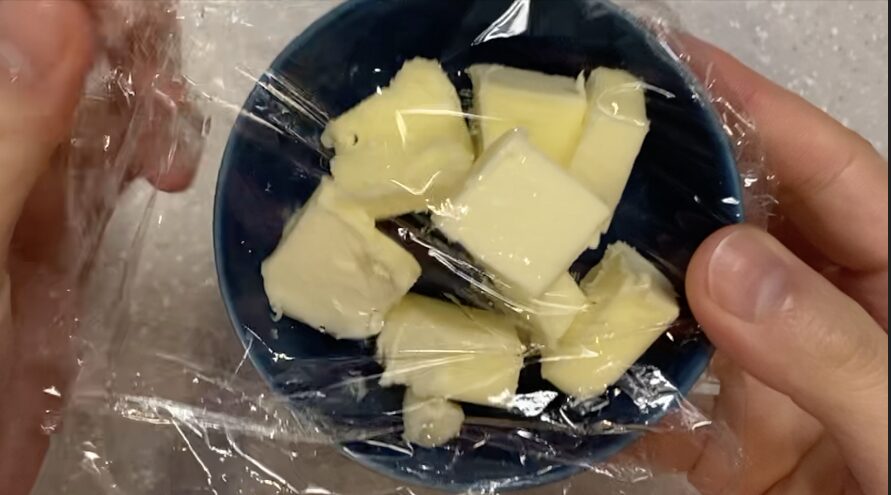 ① 無塩バターを溶かす