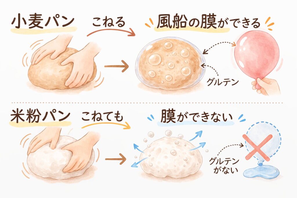 米粉パンと小麦パンはそもそも仕組みが違うパンなんだよ