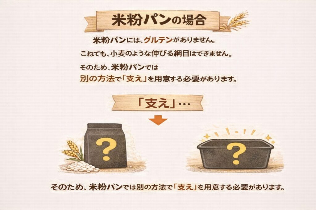 まずは「米粉パンには支えが必要」と覚えてください。