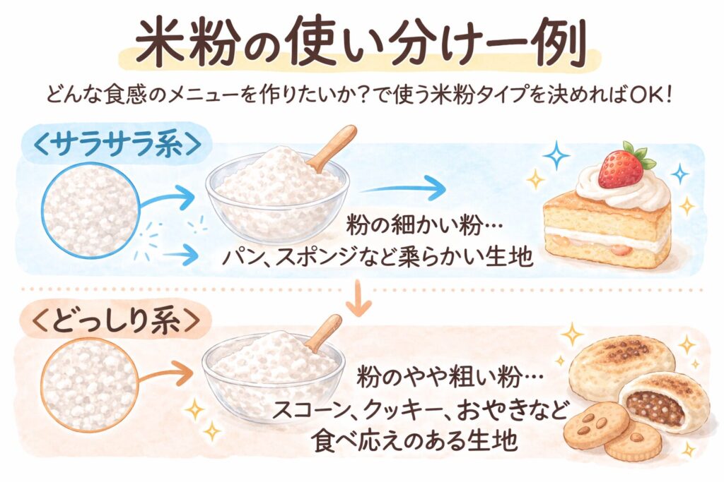 どんな食感のメニューを作りたいか?で使う米粉タイプを決めればOK!