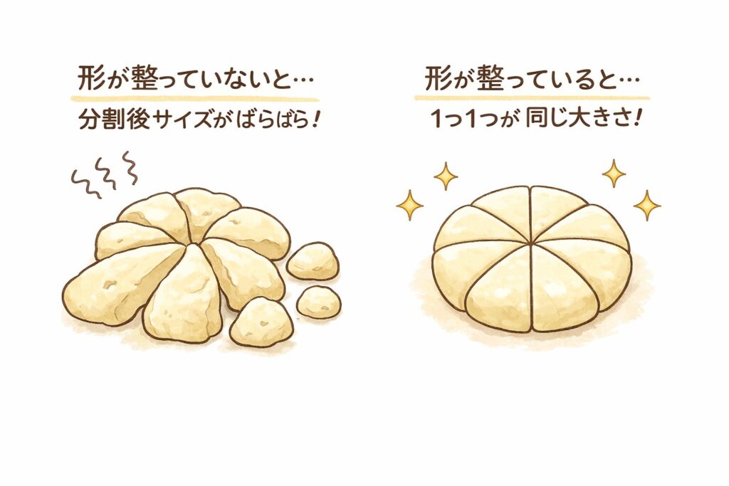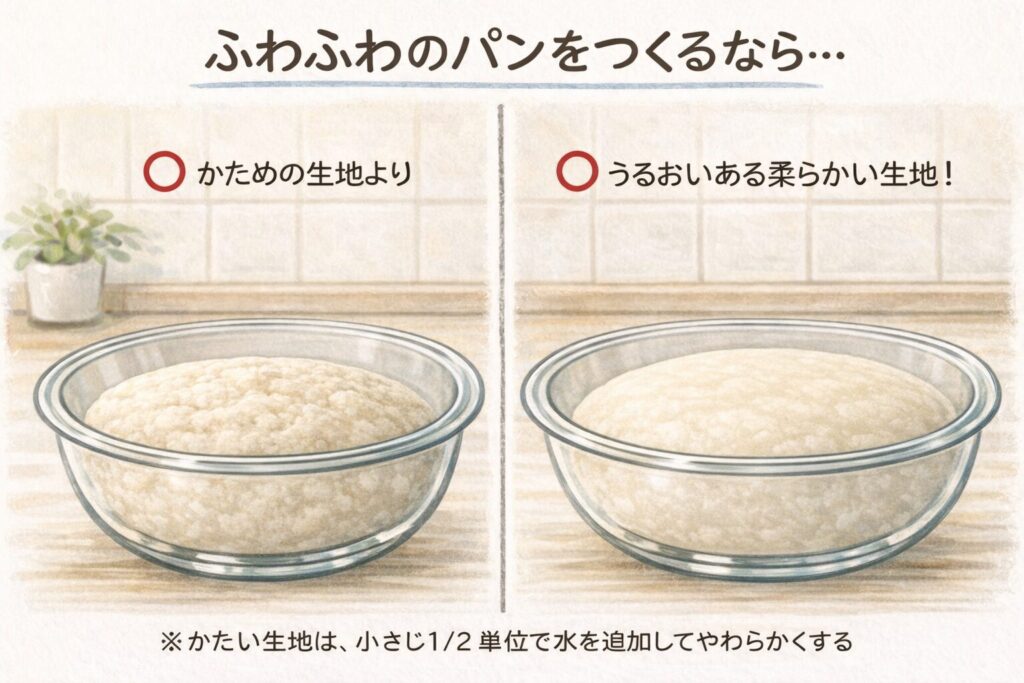 水分がたっぷりめの生地だと、横に広がって発酵しやすいよ