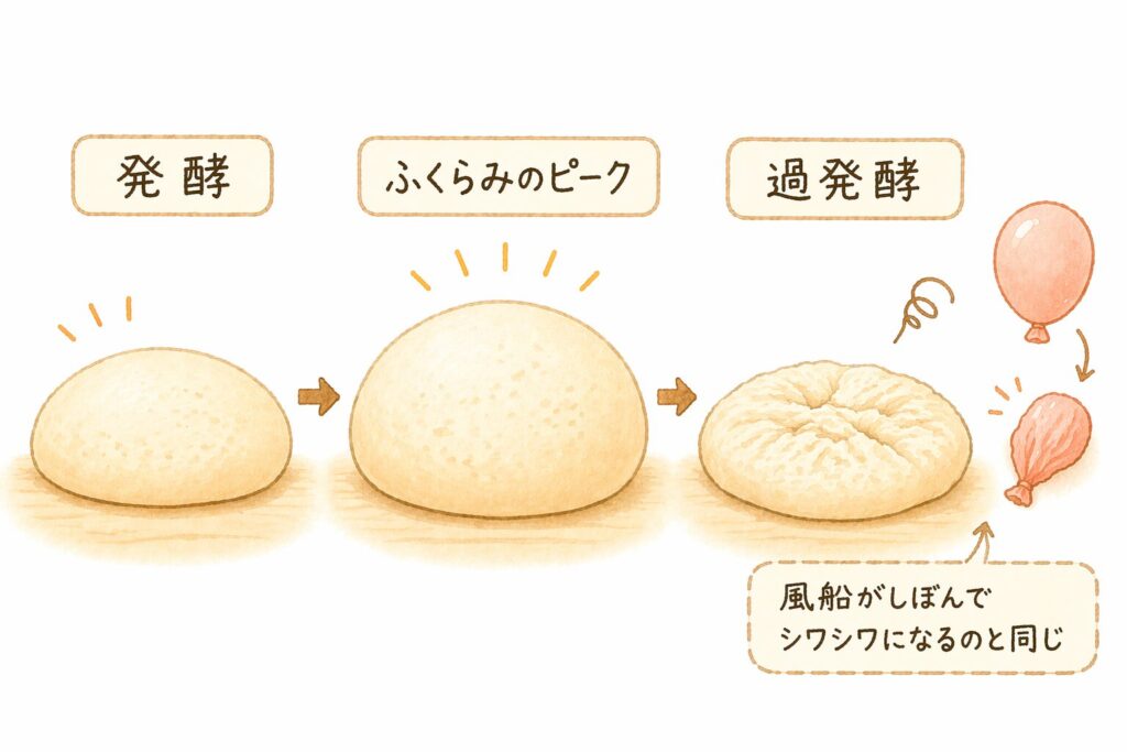発酵させすぎたことを「過発酵」というよ。