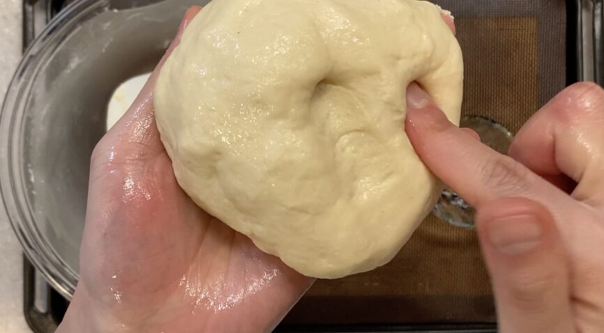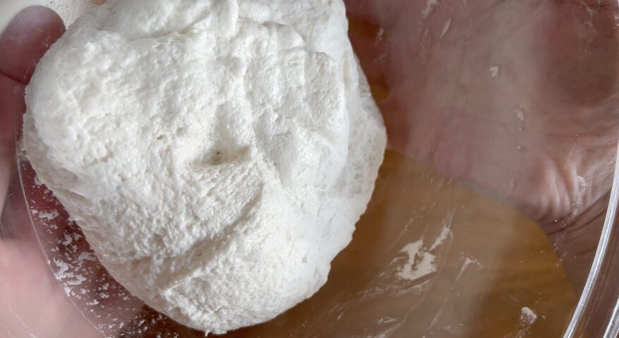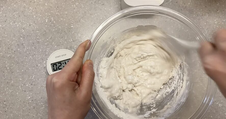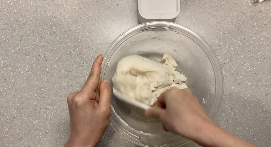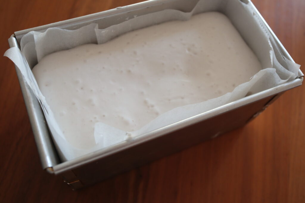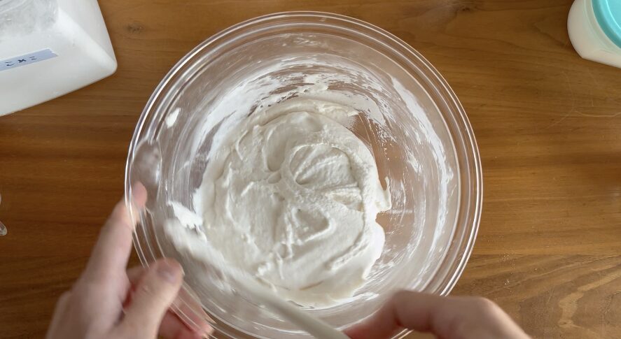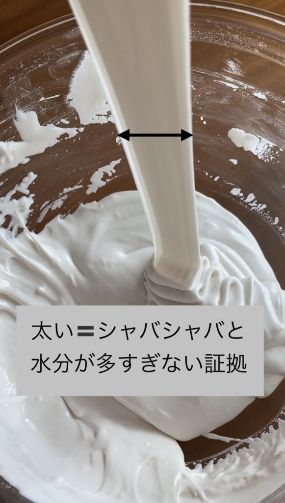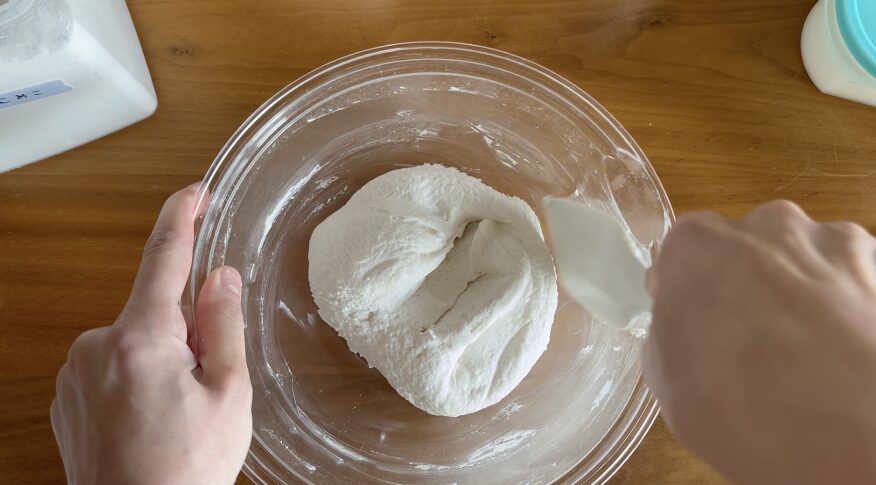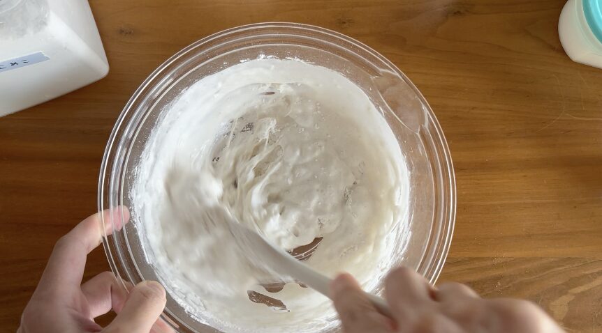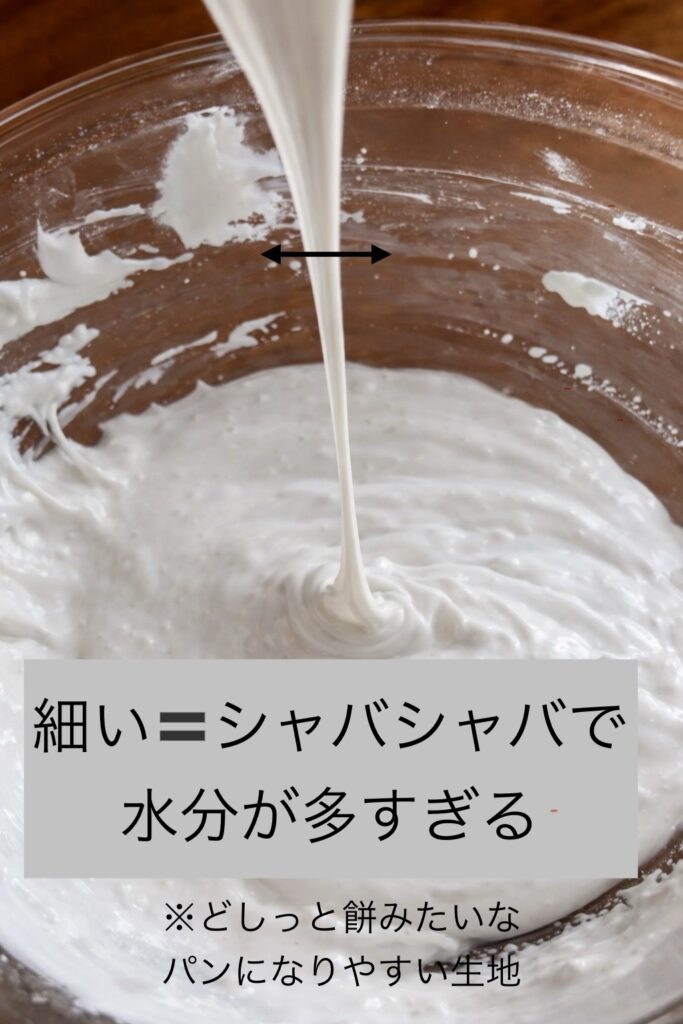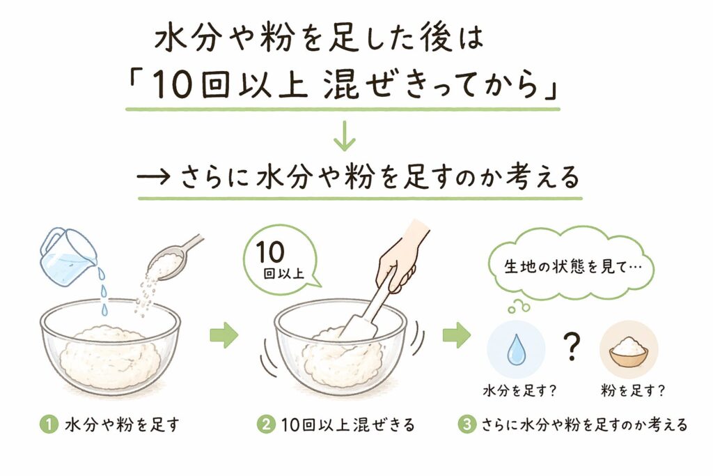 ゴムベラから生地がまったく落ちない場合は水分不足です