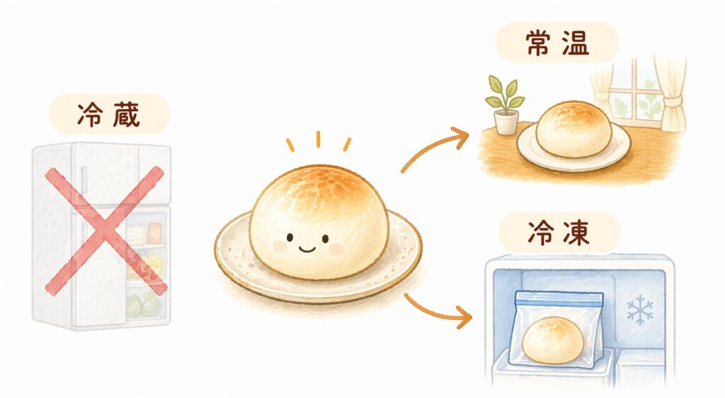 | きなこパン | 常温(当日)/冷凍 | 表面が乾きやすく常温は短時間向き |