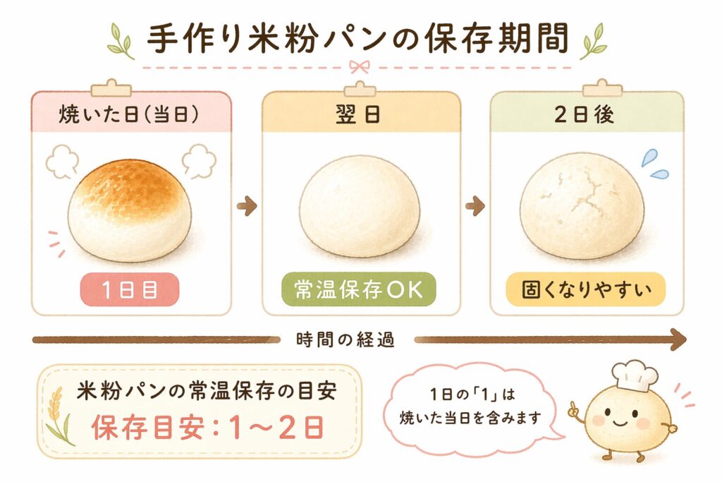 別ページ「米粉パン保存方法」で詳しくまとめています