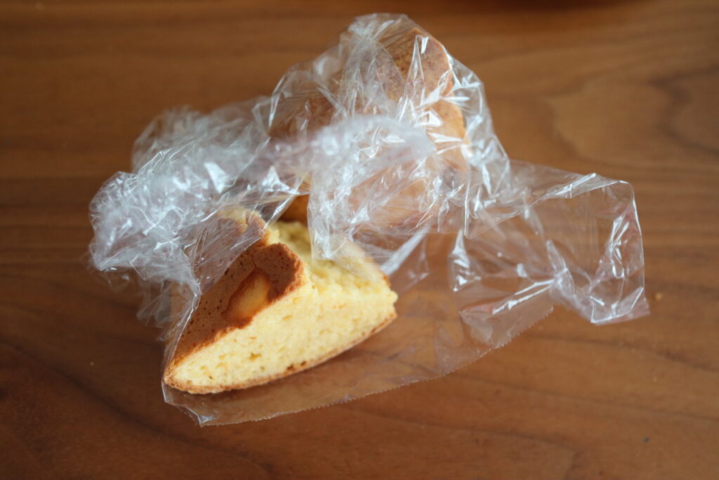冷凍庫で1ヶ月以上放置されたパンは、水分が抜けてカサカサします