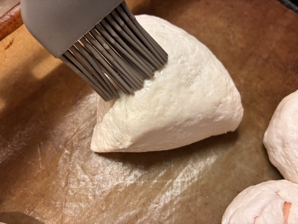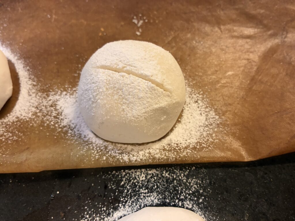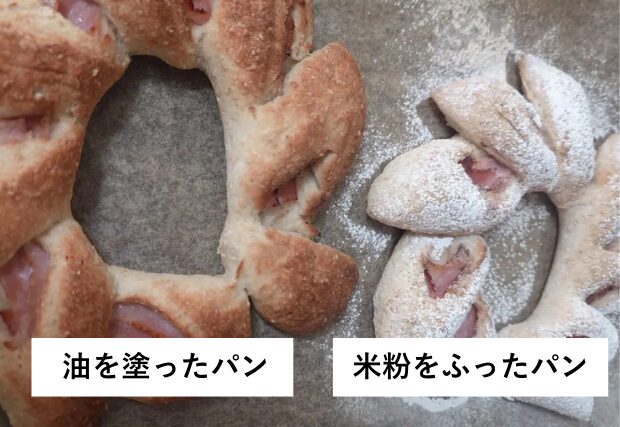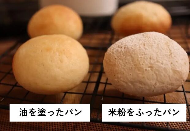 表面に油を塗るか、米粉を振りかけるよ